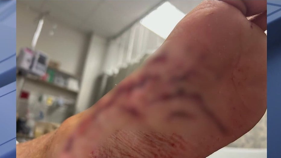 “It felt clamped and then it kind of felt hot because of the teeth. And then it just kind of started pulling. It’s almost like, um, a dog with a toy in its mouth going like, you know, like that,” Hollis recalled. “I was kicking at it after I realized it had me in its mouth. I was like, ‘Yeah, get this thing away from me!’”