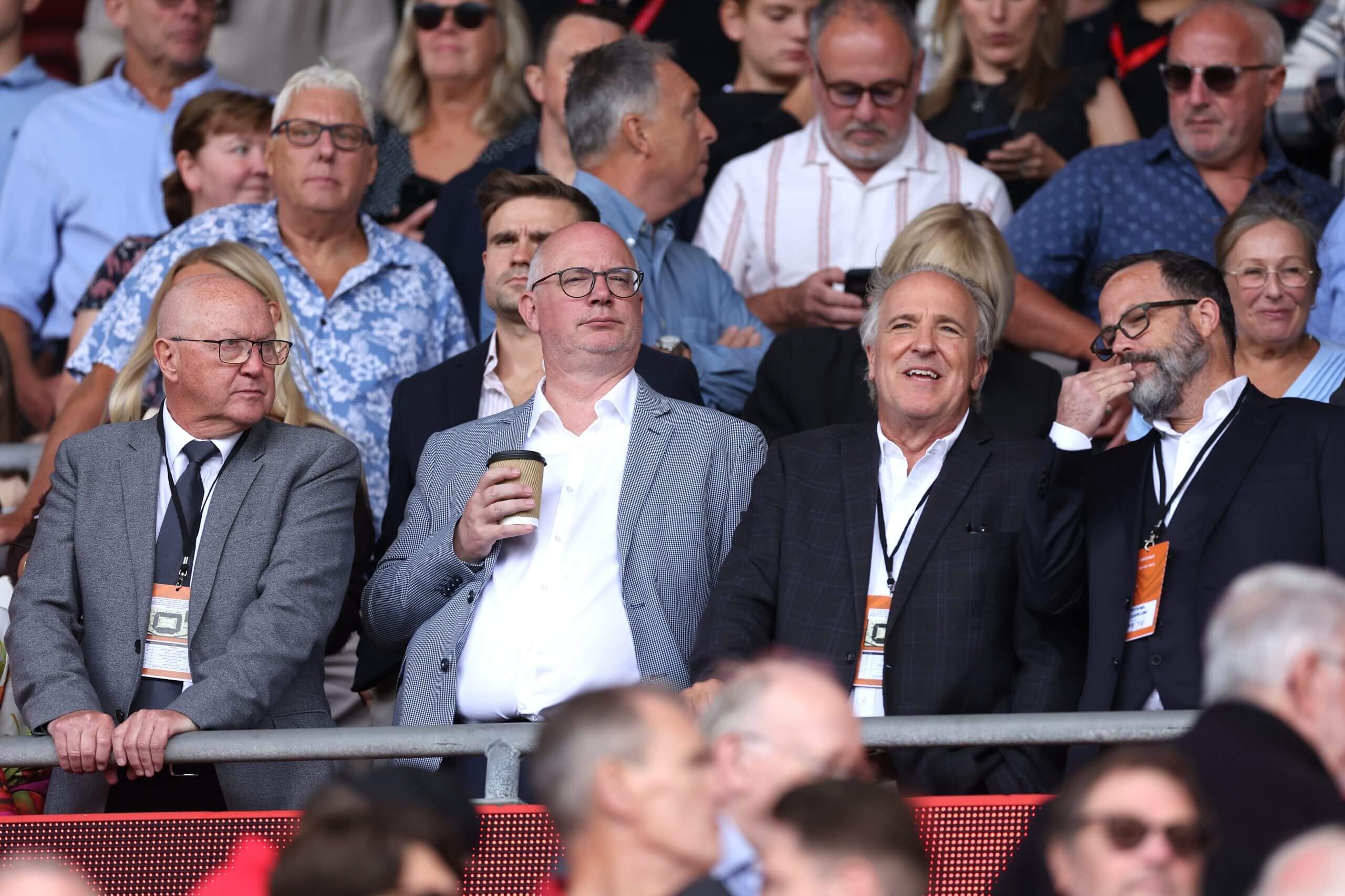 Les Reed, Shaun Harvey (left, second left) and Michael Williamson (right) all sit on Wrexham’s transfer committee (Steven Paston/Getty Images)