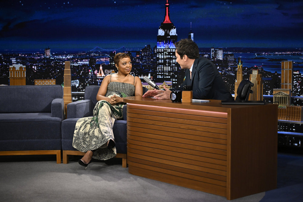 THE TONIGHT SHOW STARRING JIMMY FALLON — Episode 2278 — Pictured: (l-r) Actress Quinta Brunson during an interview with host Jimmy Fallon on Monday, April 20, 2026 — (Photo by: Todd Owyoung/NBC)