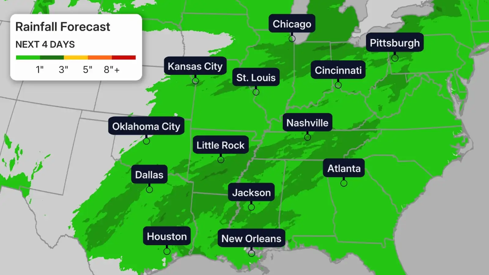 Along with the severe threat, these storms will also bring heavy rainfall. Some of these areas saw heavy rainfall from last week’s storms, so rain will be falling on already-soggy soil in some cases.