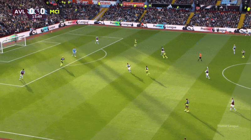 Tielemans’ clipped passes over the top from the base of midfield to Villa’s runners in behind in Rogers and Watkins were difficult to stop. This pass to Rogers against Manchester City to set up Jhon Duran’s goal is a particularly good example.