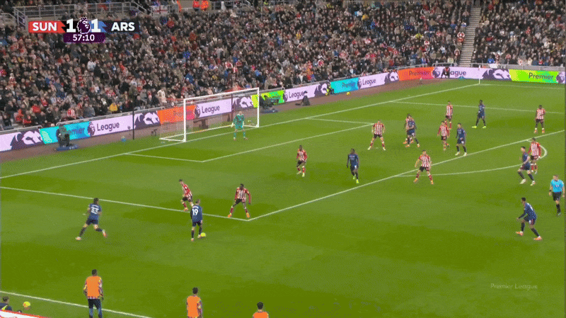 Leandro Trossard’s pass below for Martin Zubimendi against Sunderland is one example of how Arsenal use late runs from midfield along with precise passes to open up a settled defence.