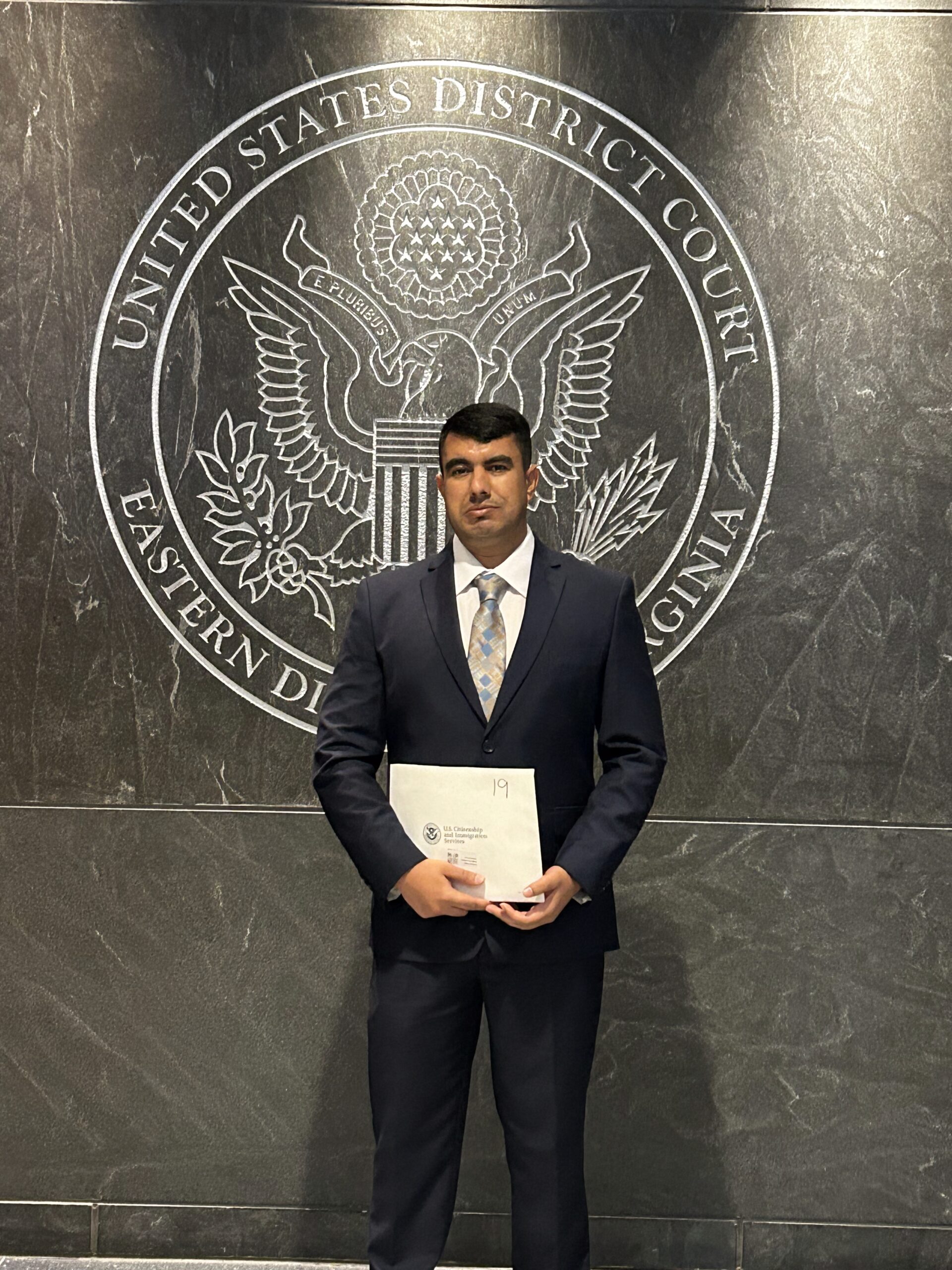 Raz Ebrat, a CRC family liaison with Fredericksburg City Schools, poses after taking the oath of allegiance to become a U.S. citizen in October. (Photo courtesy of Raz Ebrat)