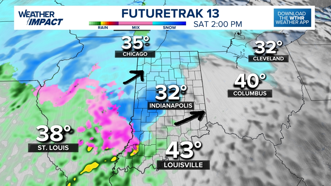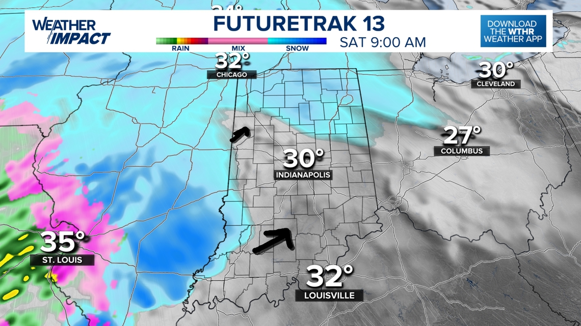 A mess of snow changing to rain or mix is possible Saturday across Indiana as our next storm arrives. Those who don’t see much rain could get 4+ inches of snow.