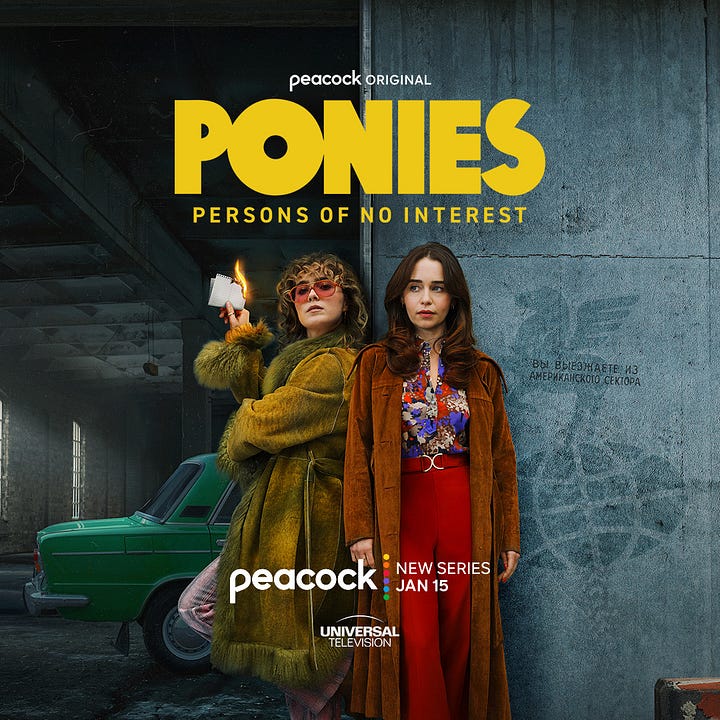 Game of Thrones alum Emilia Clarke and The White Lotus breakout Haley Lu Richardson make a crackling pair as two women thrown together by circumstance and forced to go deep undercover in 1970s Russia in this new Cold War–era espionage drama, Ponies, streaming next month on Peacock.