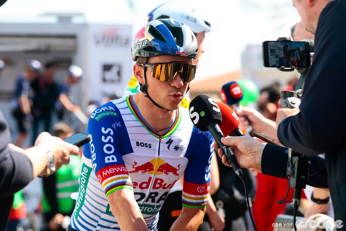 The preoccupation with Evenepoel’s presence extended into every other press conference including the reigning champion’s, coming a day after Pogačar had told Sporza’s Vive le Vélo podcast that he’d been “a little bit surprised and a little bit not” at the Belgian’s revelation.